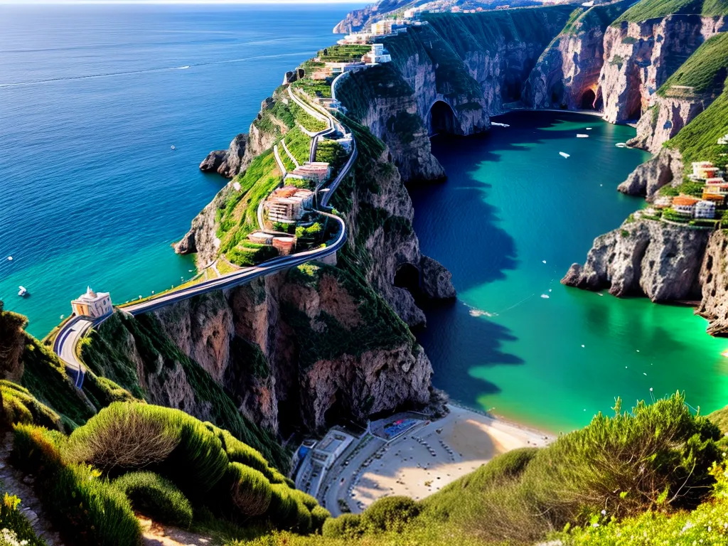A Estrada da Costa Amalfitana é um verdadeiro espetáculo para os olhos. Com suas curvas sinuosas e vistas deslumbrantes para o mar, essa estrada na Itália é uma das mais famosas do mundo. Ao longo do percurso, é possível se encantar com as charmosas cidades costeiras, como Positano e Amalfi, que parecem ter saído de um cartão postal. Além disso, a estrada é cercada por montanhas e penhascos, proporcionando paisagens de tirar o fôlego. Para quem gosta de aventura, dirigir pela Estrada da Costa Amalfitana é uma experiência única e inesquecível.