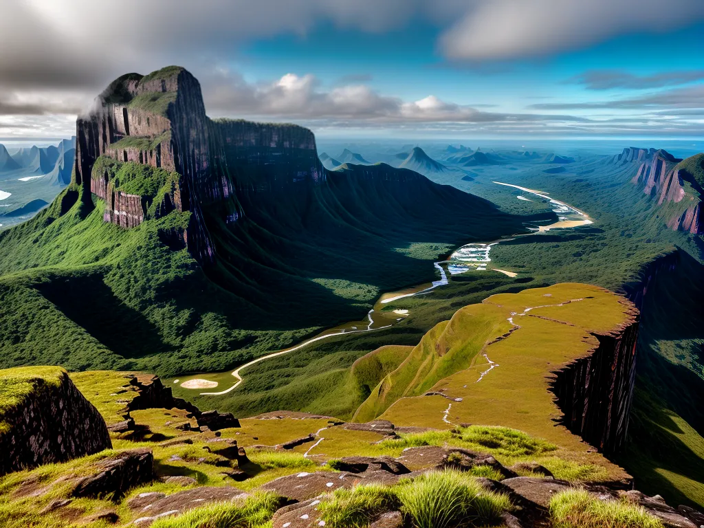 Ilustração Gráfica inspirada no artigo – Foto: Antesdemorrer.comO Parque Nacional do Monte Roraima é uma verdadeira joia da natureza, localizado na tríplice fronteira entre Roraima, Venezuela e Guiana. Com seus incríveis 2.800 metros de altitude, essa montanha mágica atrai aventureiros de todas as partes do mundo em busca de uma experiência única. O que torna esse lugar ainda mais especial são suas formações rochosas impressionantes, que parecem ter sido esculpidas por mãos divinas. Além disso, a fauna e flora do parque são simplesmente deslumbrantes, com espécies endêmicas e paisagens de tirar o fôlego. Se você é um amante da natureza e está em busca de aventura, não pode deixar de visitar o Parque Nacional do Monte Roraima. Prepare-se para uma experiência inesquecível!