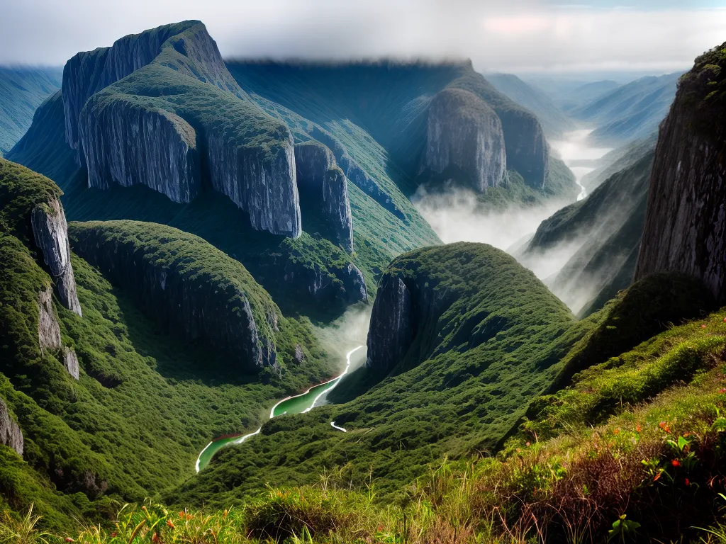 Ilustração Gráfica inspirada no artigo – Foto: Antesdemorrer.comO Parque Nacional dos Aparados da Serra é um verdadeiro espetáculo da natureza! Localizado entre os estados do Rio Grande do Sul e Santa Catarina, ele abriga uma das paisagens mais incríveis do Brasil. As famosas Cânions do Itaimbezinho e Fortaleza são de tirar o fôlego, com suas imponentes paredes de pedra e suas trilhas desafiadoras. Além disso, o parque também é lar de uma rica fauna e flora, com espécies endêmicas e ameaçadas de extinção. Se você é fã de aventura e natureza, não pode deixar de visitar esse lugar incrível!