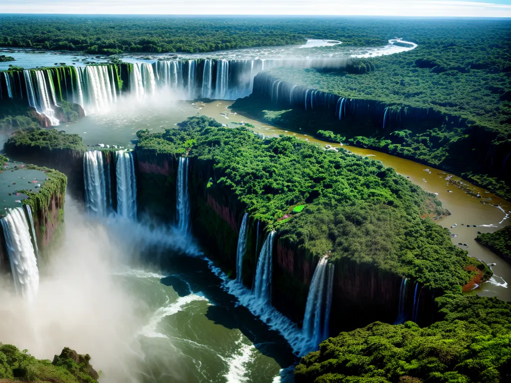 Ilustração Gráfica inspirada no artigo – Foto: Antesdemorrer.comAs Cataratas do Iguaçu são um verdadeiro espetáculo da natureza, localizadas na fronteira entre o Brasil e a Argentina. Com suas quedas d’água impressionantes, elas atraem turistas do mundo inteiro em busca de aventura e beleza. Do lado brasileiro, é possível ter uma vista panorâmica das cataratas, com trilhas que levam a diferentes mirantes, proporcionando uma experiência única e emocionante. Já do lado argentino, é possível se aproximar ainda mais das quedas d’água, através de passarelas que levam os visitantes bem perto da ação. Ambos os lados oferecem uma experiência incrível e inesquecível, permitindo que os turistas se maravilhem com a grandiosidade e a força da natureza.