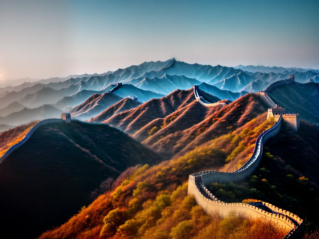 Ilustração Gráfica inspirada no artigo – Foto: Antesdemorrer.comA Grande Muralha da China é uma das maravilhas mais impressionantes do mundo. Com mais de 21 mil quilômetros de extensão, ela foi construída durante séculos para proteger o império chinês de invasões. Além de sua função defensiva, a muralha também servia como rota comercial e de comunicação entre diferentes regiões da China. Hoje em dia, é um dos principais pontos turísticos do país, atraindo milhões de visitantes todos os anos. Caminhar pela muralha é uma experiência única, onde é possível apreciar a grandiosidade da construção e contemplar belas paisagens. É realmente impressionante pensar em todo o esforço humano que foi necessário para erguer essa obra monumental.