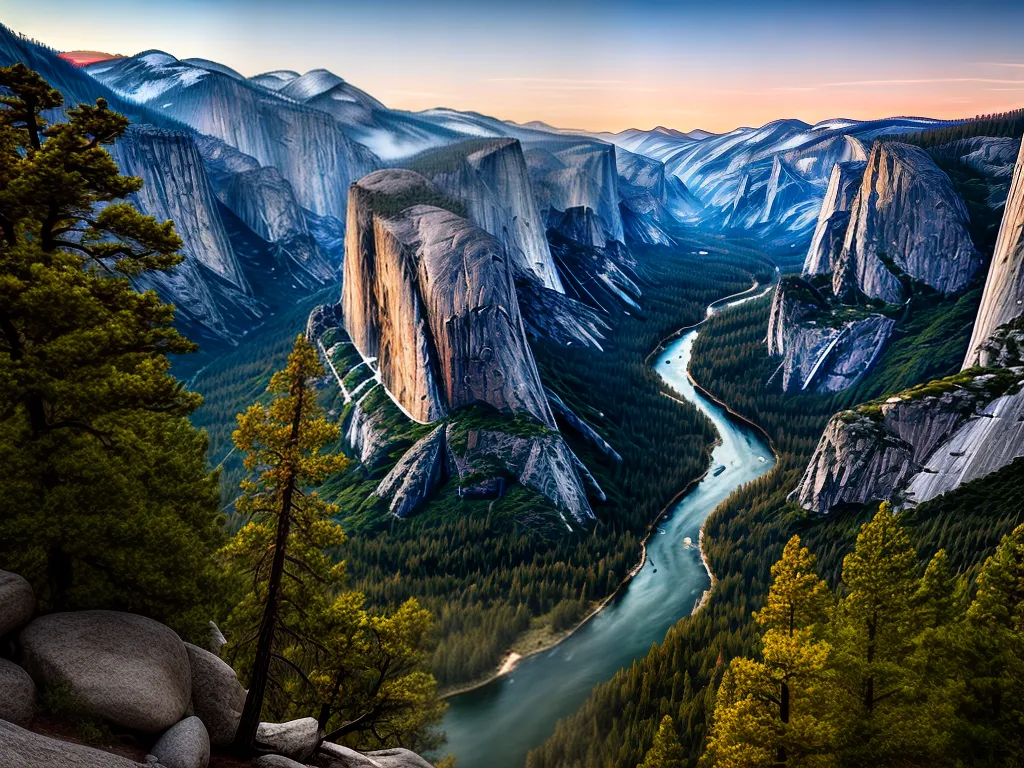 Ilustração Gráfica inspirada no artigo – Foto: Antesdemorrer.comO Parque Nacional de Yosemite, nos Estados Unidos, é um verdadeiro paraíso para os amantes da natureza. Com suas paisagens de tirar o fôlego, é impossível não se encantar com a grandiosidade desse lugar. As famosas formações rochosas, como o El Capitan e o Half Dome, são verdadeiros cartões-postais e atraem escaladores de todo o mundo. Além disso, as quedas d’água, como a famosa Yosemite Falls, são um espetáculo à parte. Para os aventureiros, trilhas e caminhadas levam a lugares incríveis, como o Glacier Point, de onde se tem uma vista panorâmica de toda a região. Com certeza, uma visita ao Parque Nacional de Yosemite é uma experiência que ficará para sempre na memória.