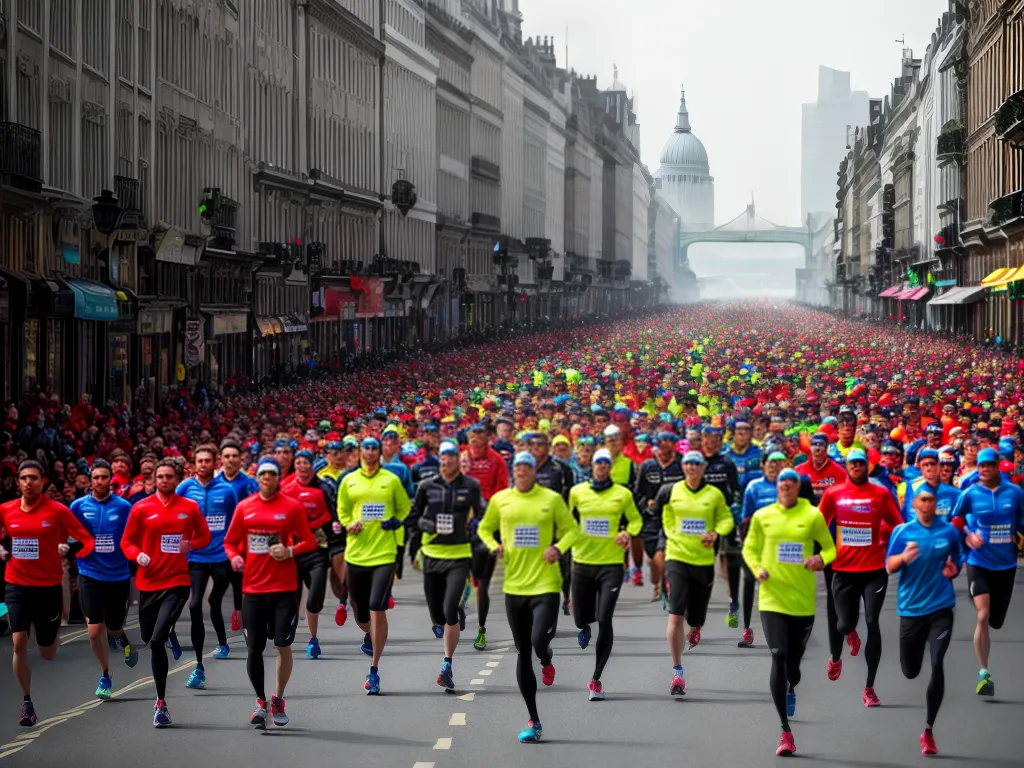 A Maratona de Londres é uma das mais famosas e prestigiadas do mundo. Todos os anos, milhares de corredores se reúnem para enfrentar os 42 quilômetros pelas ruas da capital britânica. Mas essa não é uma maratona qualquer, é uma verdadeira festa! Os londrinos se unem para torcer pelos participantes, fazendo com que o percurso seja uma verdadeira celebração. Além disso, a maratona conta com a presença de atletas renomados e até mesmo celebridades, o que a torna ainda mais especial. Quem participa dessa prova, além de enfrentar o desafio físico, tem a oportunidade de vivenciar a atmosfera única de Londres.