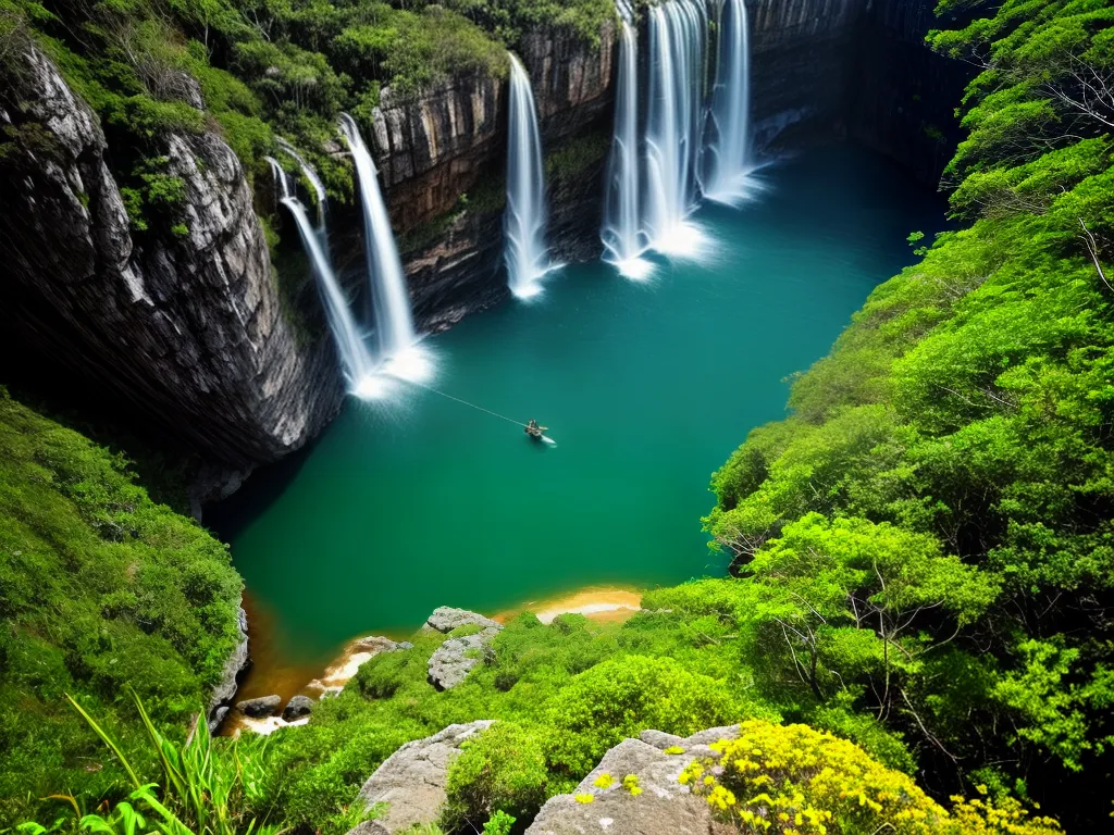 Quem visita o Parque Nacional da Chapada dos Veadeiros, em Goiás, não pode deixar de conhecer a famosa Cachoeira Santa Bárbara. Com suas águas cristalinas e tons de azul impressionantes, a cachoeira é um verdadeiro espetáculo da natureza. Para chegar até lá, é preciso percorrer uma trilha de aproximadamente 6 km, mas o esforço vale a pena. Ao chegar, os visitantes podem se refrescar nas águas geladas da cachoeira e aproveitar para relaxar e contemplar a beleza ao redor. Além da Cachoeira Santa Bárbara, o parque também abriga outras atrações imperdíveis, como a Cachoeira dos Saltos, com suas quedas d’água imponentes, e o Vale da Lua, com suas formações rochosas únicas. A Chapada dos Veadeiros é um verdadeiro tesouro natural do Brasil e um destino imperdível para os amantes da aventura e da natureza.