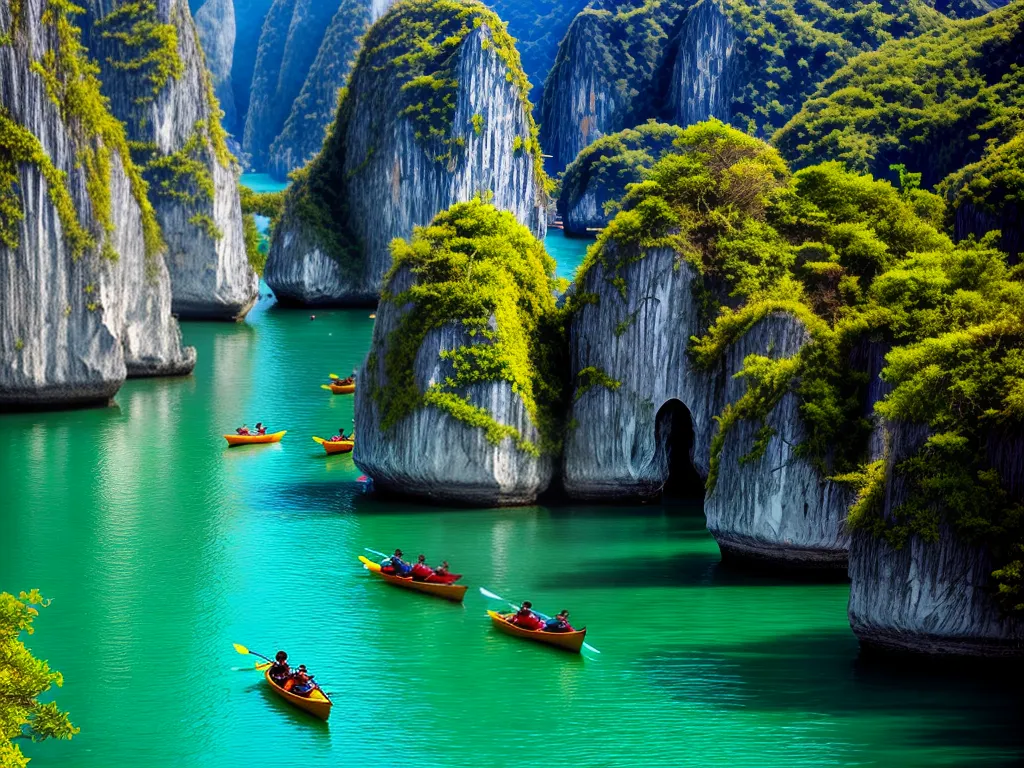 A canoagem na Baía de Halong, Vietnã é uma experiência única e empolgante para os amantes de aventura. Imagine remar em meio a formações rochosas imponentes, com águas cristalinas refletindo o sol. É uma verdadeira imersão na natureza exuberante do Vietnã. Além disso, a baía possui diversas cavernas e grutas que podem ser exploradas de caiaque, revelando paisagens de tirar o fôlego. É uma oportunidade incrível de se conectar com a natureza e desbravar lugares inexplorados. Aventure-se na canoagem na Baía de Halong e descubra um mundo de belezas naturais que vão te deixar maravilhado.