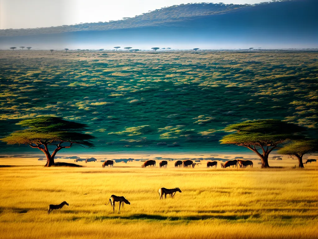 O Parque Nacional Serengeti, na Tanzânia, é o destino perfeito para quem busca uma experiência única em um safari. Com uma área de mais de 14.000 quilômetros quadrados, o parque abriga uma incrível diversidade de animais selvagens, como leões, elefantes, girafas e zebras. Durante o safari, os visitantes têm a oportunidade de se aproximar dessas incríveis criaturas em seu habitat natural, observando seus comportamentos e admirando sua beleza. Além disso, o Parque Nacional Serengeti também é famoso pela grande migração anual de gnus e zebras, um espetáculo impressionante da natureza que não pode ser perdido. Prepare-se para se maravilhar com a vida selvagem e viver uma aventura inesquecível no Parque Nacional Serengeti.