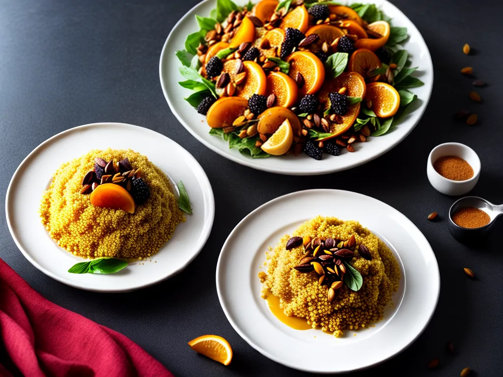 O cuscuz marroquino com frutas secas é um prato versátil e pode ser servido como acompanhamento ou até mesmo como prato principal. Se você é vegetariano ou vegano, pode aproveitar essa delícia sem preocupações, já que não leva nenhum ingrediente de origem animal. Além disso, o cuscuz marroquino é muito fácil de fazer e não demanda muitos ingredientes. Basta cozinhar a sêmola no vapor, misturar com as frutas secas e temperar com especiarias como canela e cominho. O resultado é um prato rico em sabores e texturas, que vai te transportar direto para as ruas de Marraquexe. Não perca tempo e experimente essa delícia marroquina!