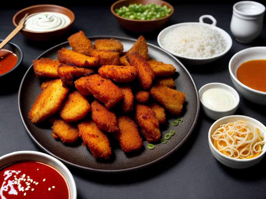 Ilustração Gráfica inspirada no artigo – Foto: Antesdemorrer.comQuando se fala em frango frito sul-coreano, a primeira coisa que vem à mente é uma explosão de sabores e uma crocância de dar água na boca. Na Coreia do Sul, o frango frito é levado a sério e é considerado um verdadeiro patrimônio gastronômico. Os sul-coreanos têm uma técnica especial para preparar o frango, que envolve empanar duas vezes e fritar duas vezes, resultando em uma casquinha crocante por fora e uma carne suculenta por dentro. Para acompanhar, nada melhor do que um molho picante ou um molho adocicado, que dão um toque especial ao prato. Se você é fã de frango frito, não pode deixar de experimentar essa delícia sul-coreana.