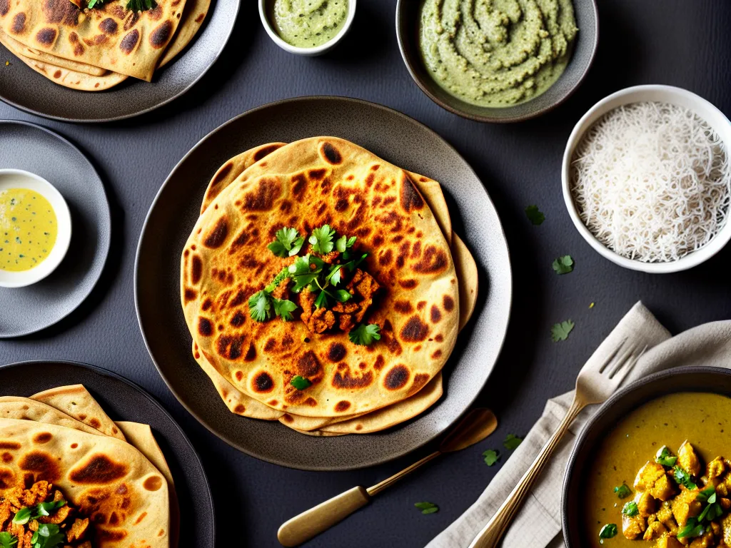 Ilustração Gráfica inspirada no artigo – Foto: Antesdemorrer.comQuando se fala em comida indiana, é impossível não pensar nas deliciosas Parathas. Esses pães indianos são macios, amanteigados e simplesmente irresistíveis. O segredo está na massa, que é feita com farinha, água e um toque de óleo ou manteiga. Depois de sovar bem, a massa é dividida em pequenas porções, que são esticadas e recheadas com uma infinidade de ingredientes, como batatas, queijo ou legumes. O resultado é um pãozinho dourado, crocante por fora e macio por dentro, que combina perfeitamente com o chutney e o curry. Ah, o chutney! Essa pasta agridoce é feita com ervas, especiarias e frutas, e dá um toque de frescor e sabor ao prato. Já o curry, esse dispensa apresentações. É uma explosão de sabores, com uma mistura de temperos e ingredientes que varia de acordo com a região da Índia. Seja vegetariano ou com carne, o curry é sempre um espetáculo para o paladar. Então, se você quer experimentar uma verdadeira explosão de sabores, não deixe de provar a combinação de Paratha com chutney e curry. É uma viagem gastronômica que vai te transportar diretamente para a Índia!