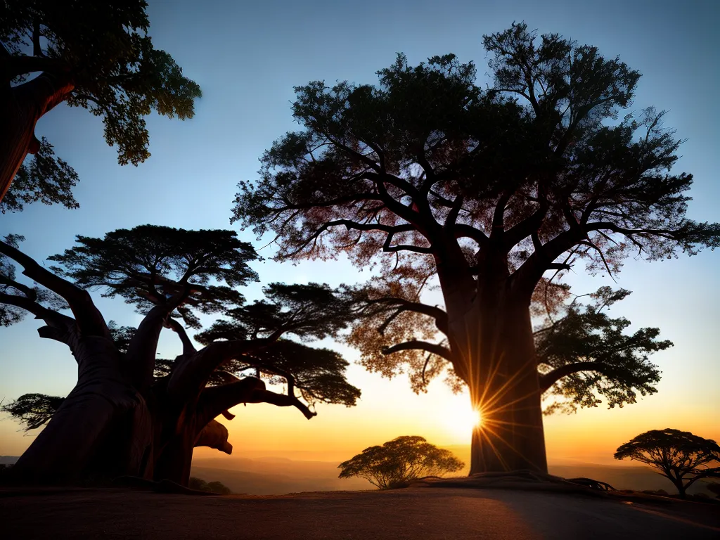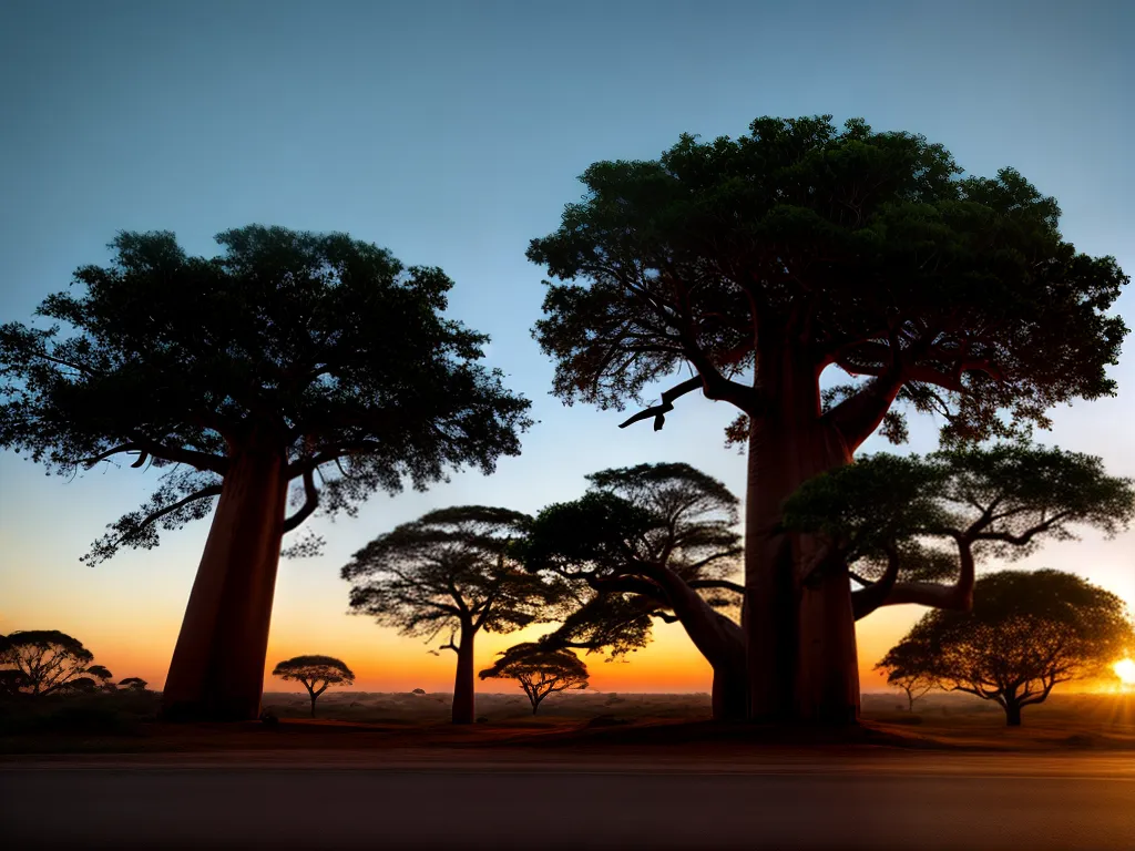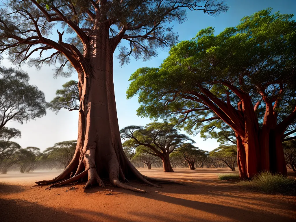 – Baobá: uma árvore peculiar e icônica, conhecida por sua aparência distinta e longevidade. É nativa da África, mas também pode ser encontrada em outras regiões, como a Austrália.