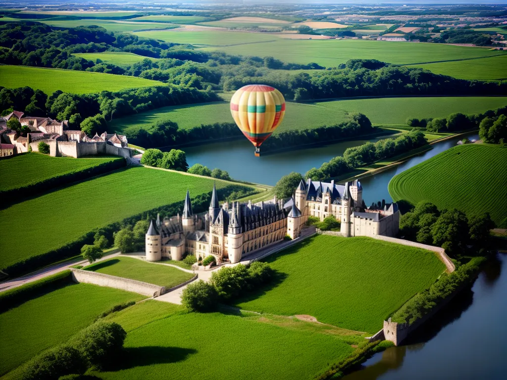 Ilustração Gráfica inspirada no artigo – Foto: Antesdemorrer.comImagine-se flutuando suavemente no ar, enquanto contempla as paisagens deslumbrantes do Vale do Loire, na França. Do alto de um voo de balão, você pode apreciar as vinhas que se estendem por quilômetros, formando um mosaico de cores e texturas. Os castelos imponentes, com suas torres e jardins exuberantes, parecem ainda mais grandiosos quando vistos de cima. É uma experiência única, que combina a sensação de liberdade proporcionada pelo balão com a beleza estonteante dessa região tão famosa por sua história e cultura. Um verdadeiro deleite para os olhos e uma viagem no tempo que certamente ficará marcada na memória.