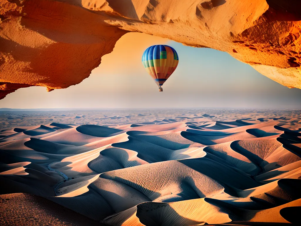 Ilustração Gráfica inspirada no artigo – Foto: Antesdemorrer.comVocê já imaginou a sensação de voar de balão sobre o deserto do Saara, no Marrocos? É uma experiência simplesmente incrível! Imagine-se flutuando suavemente no ar, enquanto admira a vastidão do deserto, com suas dunas douradas e paisagens de tirar o fôlego. É como se você estivesse em um filme de aventura! Além disso, a tranquilidade e a paz que você sente lá de cima são indescritíveis. É uma oportunidade única de ver o Saara de um ângulo completamente diferente e se maravilhar com a grandiosidade da natureza. Se você está em busca de uma experiência emocionante e memorável, voar de balão sobre o deserto do Saara é uma escolha certeira!