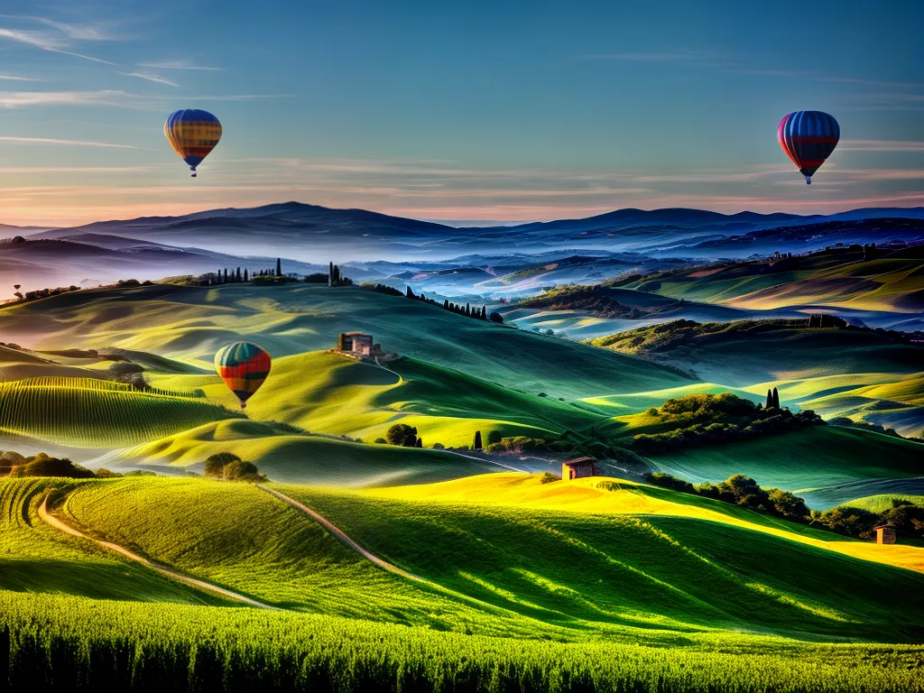Ilustração Gráfica inspirada no artigo – Foto: Antesdemorrer.comSe você é um(a) aventureiro(a) em busca de novas experiências, não pode deixar de fazer um passeio de balão pela deslumbrante Toscana, na Itália. Imagine só, flutuar pelos céus enquanto aprecia as belas paisagens, com suas colinas verdejantes e vinhedos intermináveis. É uma verdadeira pintura em movimento! Além disso, a sensação de liberdade e tranquilidade é indescritível. Sem contar que, lá de cima, é possível avistar cidades encantadoras como Florença e Siena. É uma aventura que vai ficar marcada para sempre na sua memória. Então, se prepare para levantar voo e se encantar com toda a magia que a Toscana tem a oferecer. Prepare-se para uma experiência única e inesquecível!