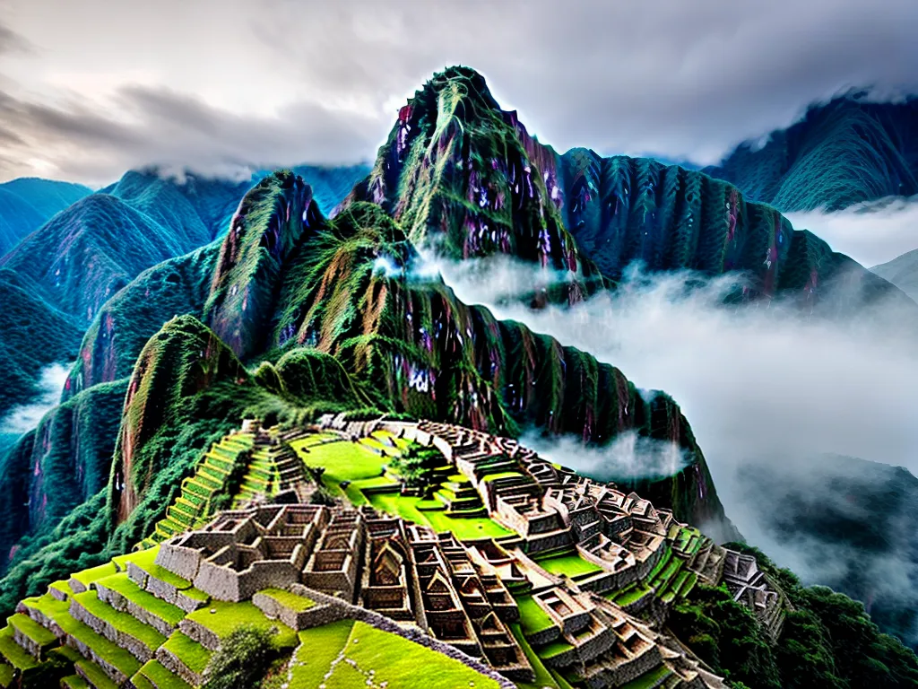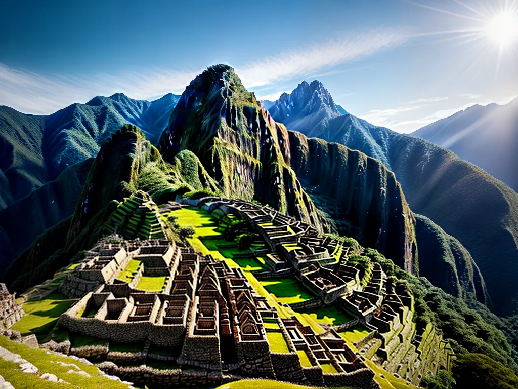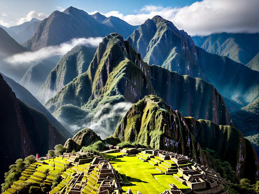 - Machu Picchu, no Peru, uma cidade antiga construída pelos incas nas montanhas dos Andes.